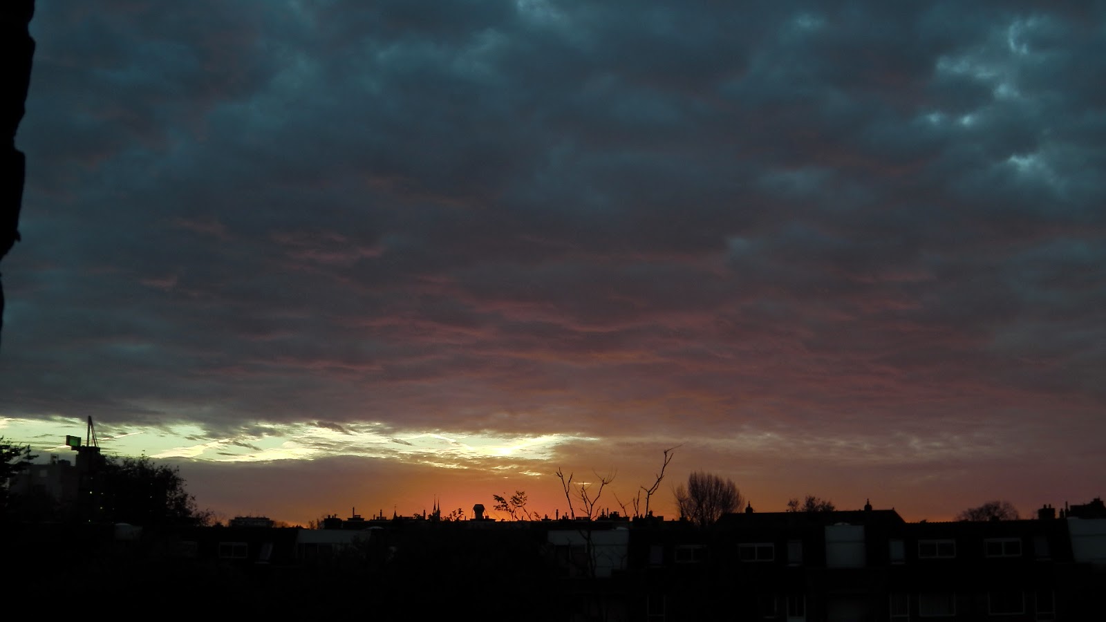 Since Linda and I moved in our current appartment two years ago, I love watching the sky. It’s an ever-changing painting that keeps me fascinated. Especially in early mornings or on cloudy days. In the house we lived before this one, we had the curtains closed most of the time because looking out the window you’d look straight into the homes of the neighbors living opposite from us. In the new house, we can look out either at the park at the front or the schoolyard at the back and the sky, which makes me a lot happier.